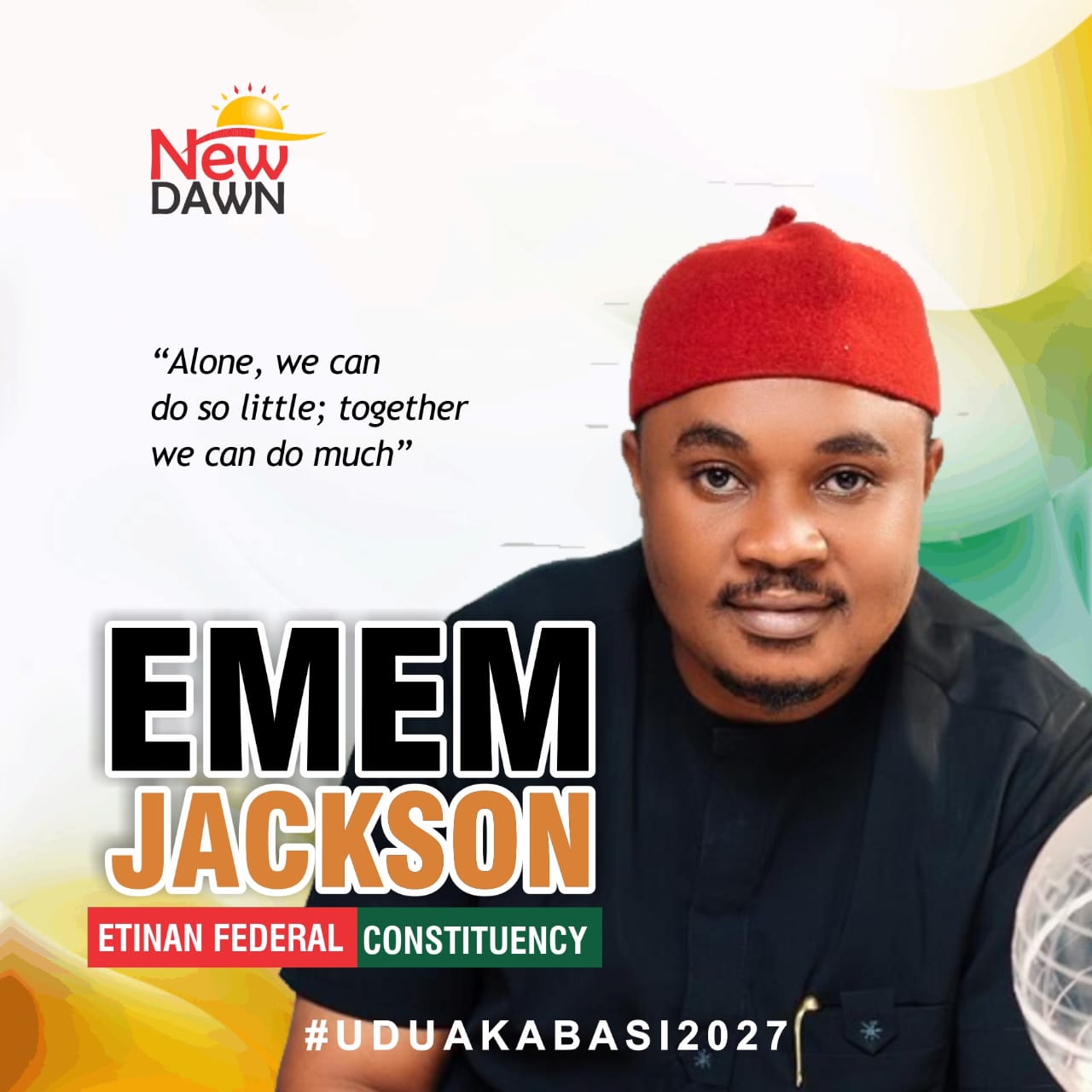 UduakAbasi 2027 is a forward-looking political movement in Etinan Federal Constituency—covering Etinan, Nsit Ibom, and Nsit Ubium LGAs—championed by Emem Jackson in his bid to represent the people in the Federal House of Representatives. The group is built on the principles of inclusive leadership, youth empowerment, community development, and effective representation. It seeks to unite the constituency, amplify the voices of the people, and drive meaningful progress through responsive governance, strategic initiatives, and a shared vision for a better future.